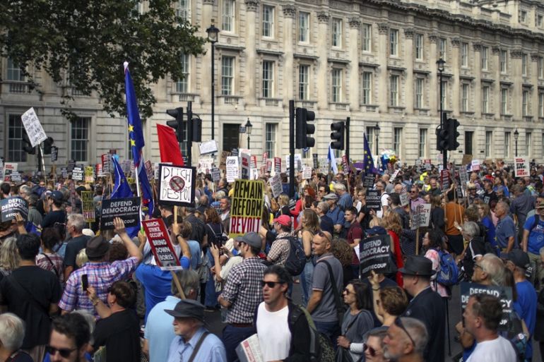Thousands of people across the UK have protested against Prime Minister Boris Johnson‘s decision to suspend Parliament just weeks before the deadline for the UK to leave the European Union.