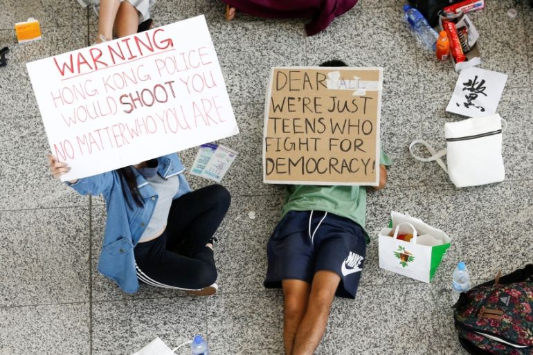 The comments on Monday by Beijing’s top office on Hong Kong policy came a day after tense clashes between police and protesters on Sunday, and as thousands of demonstrators flooded the city’s international airport and prompted the cancellation of all flights.