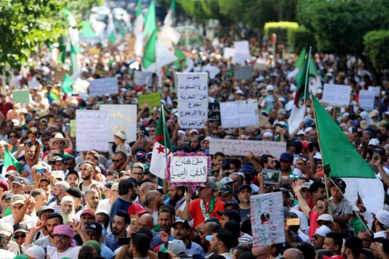 As the country’s protest movement entered its seventh month, demonstrators on Friday gathered in Algiers and other major cities to call for the removal of the ruling elite, shouting slogans such as “free and democratic Algeria” and a “civil state, not a military one”.
