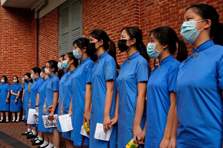 Hong Kong school students form human chain after weekend protests