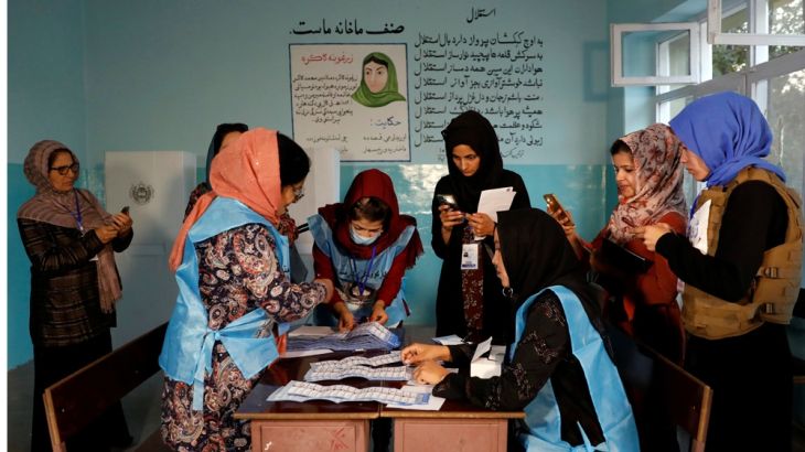Saturday’s polls saw the incumbent, President Ashraf Ghani, make a bid for a second and final five-year term in a crowded pool of more than a dozen other candidates weeks after peace talks between the Taliban and the United States over ending the 18-year war broke down.