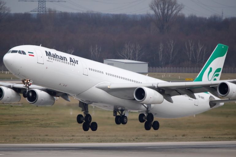 Mahan Air is on US sanctions list and Washington has long urged allies to ban it from their territory.