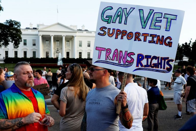 LGBTQ media advocacy group GLAAD said the ban creates a “dangerous environment for trans service members” and weakens “the strength of our military”.