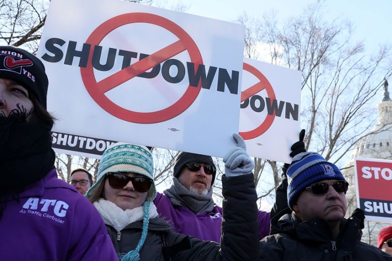 ![Cheryl Monroe (right), a Food and Drug Administration employee, and Bertrice Sanders, a Social Security Administration employee, rally to call for an end to the partial government shutdown [Paul Sancya/AP Photo]](https://www.aljazeera.com/wp-content/uploads/2019/01/3b30a483c27741dfa6b0dbbc51e49c6e_18.jpeg?quality=80)