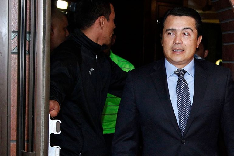 Members of Hernandez’s family who attended the trial were swarmed by protesters as they left the court. Some protesters chanted “Fuera JOH”, meaning “Out with JOH”, referring to Honduran President Juan Orlando Hernandez.