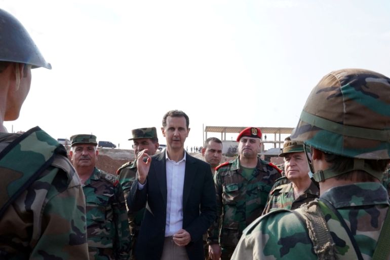 Al-Assad was seen surrounded by army commanders and soldiers in Hobeit, which the army captured in August as part of a Russian-led offensive to capture Idlib and its surroundings.