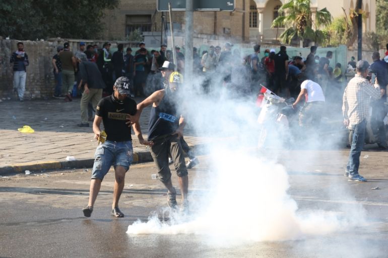 Three protesters were killed when they were struck by tear gas canisters in Baghdad, security and medical officials said.