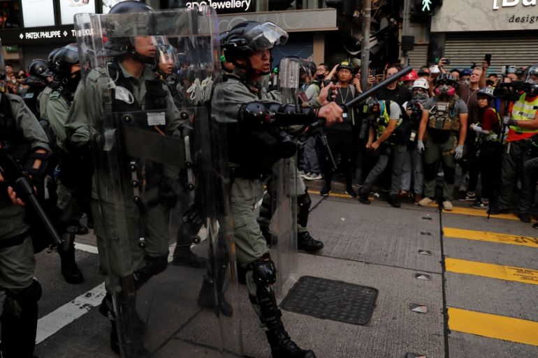 Hong Kong police have faced criticism for responding with heavy-handed tactics including tear gas, pepper spray, rubber bullets and water cannon to subdue protesters.
