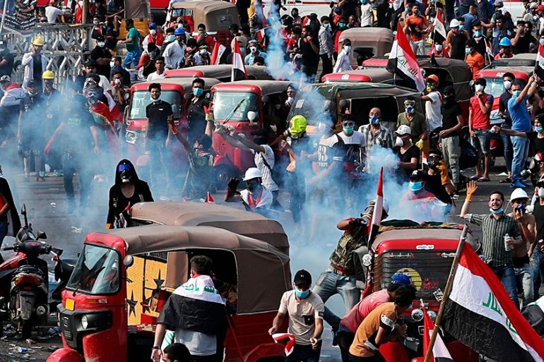 Security forces stationed on the nearby Jumhuriya bridge lobbed tear gas at protesters who tried to break through to the heavily fortified Green Zone, which houses government buildings and foreign missions, Reuters news agency reported.