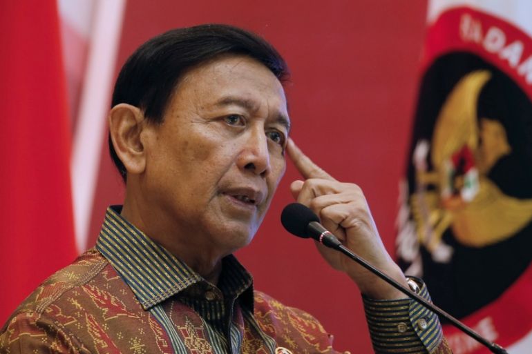 As security minister, Wiranto oversees five ministries including foreign, interior and defence.