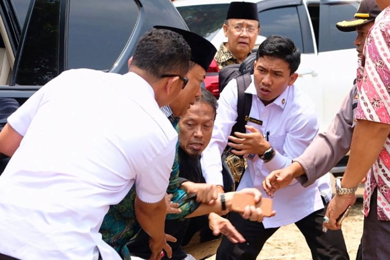 On Friday, a new video posted on social media showed the moment the attacker lunged at the security minister, hitting him at least twice before he was subdued by the crowd, while Wiranto fell forward.