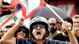 Earlier, anti-government protesters in Beirut clashed with supporters of Hezbollah.