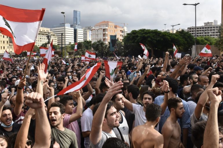 ![Protestors hold placards calling out the political establishment in downtown Beirut [Timour Azhari/Global News Insight]](https://www.aljazeera.com/wp-content/uploads/2019/10/cb234b14bdda4948a072dac995c85319_18.jpeg?quality=80)