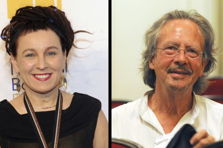 ![Olga Tokarczuk and Peter Handke [AP Photo]](https://www.aljazeera.com/wp-content/uploads/2019/10/742834ed3ca2404b99db4eaf5bb466fd_18.jpeg?resize=770%2C513&quality=80)