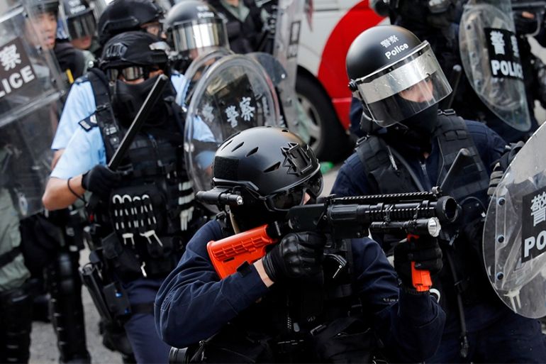Hong Kong, China – Hong Kong police have deployed tear gas, rubber bullets, bean bag rounds and live ammunition since protests began in June, but amid increasingly violent clashes, there is concern that recent changes to policing guidance will only aggravate the situation.