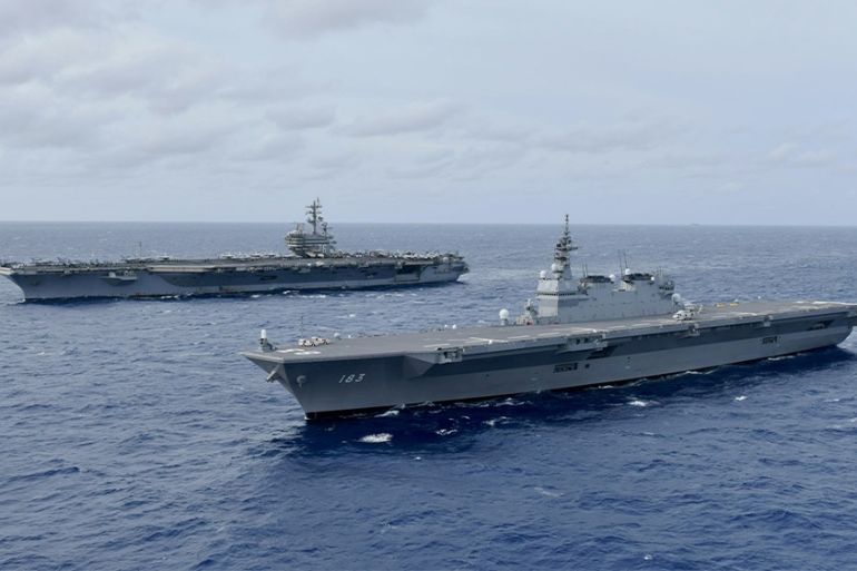 Taiwan’s defence ministry said on Sunday a group of Chinese vessels led by the carrier passed through the sensitive strait tailed by ships from the US and Japan.