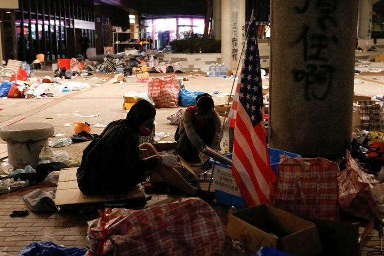 Hong Kong, China – About 100 people remain holed up on the campus of The Hong Kong Polytechnic University (PolyU) after several days of clashes between the police and protesters involving tear gas, water cannon and rubber-coated bullets. The protesters fought back with their own improvised weapons.