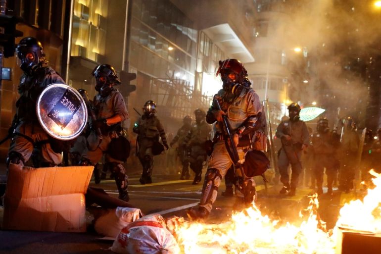 Hong Kong, China – Police in Hong Kong have used tear gas, pepper spray and water cannons to disperse anti-government protesters as thousands gathered for a banned rally calling for international emergency support as the city’s democracy movement pushes into its 22nd week.