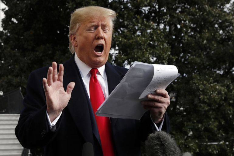 The Democratic-led House is investigating whether Trump abused his power of office by pushing Ukraine to investigate a political rival.