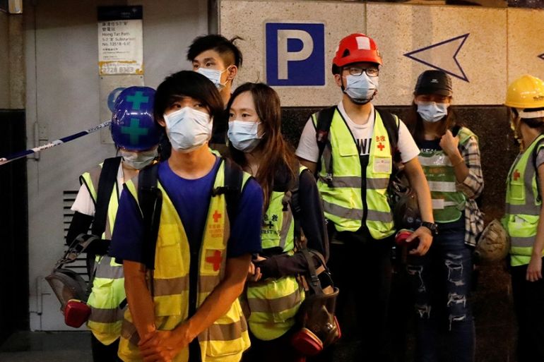 Hong Kong, China – Last week, as police laid siege to the Hong Kong Polytechnic University, an image of volunteer medics in high-visibility vests, hands tied behind their backs spread rapidly through social media.