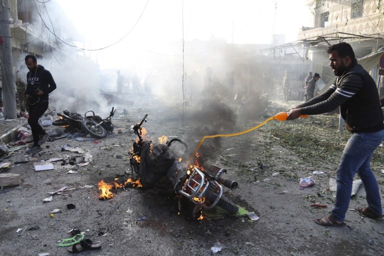 The blast on Saturday ripped through a crowded market in Tal Abyad, a town controlled by Turkish-backed opposition fighters.