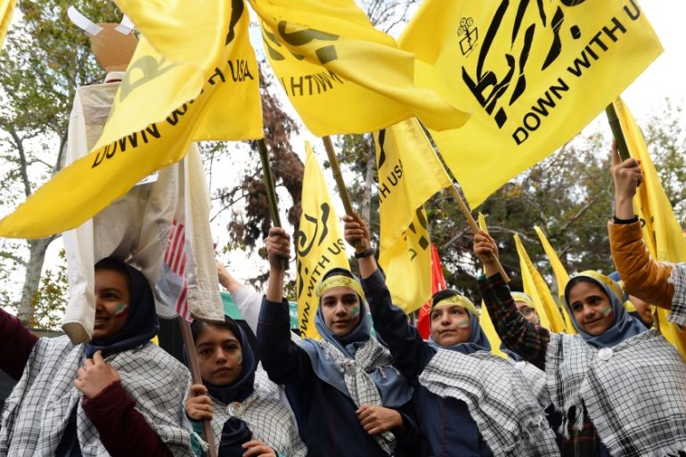 Iranians gather in front of the former US Embassy building in Tehran for the 40th anniversary of the 1979 US Embassy takeover [Fatemeh Bahrami/Anadolu Agency]