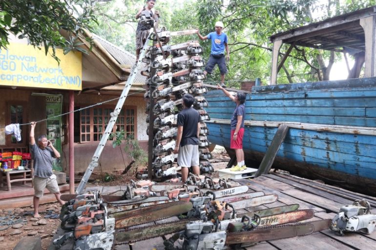 Palawan, Philippines – In the heart of the Philippines tourist hotspot of Palawan, Bobby Chan stood on a shaded porch outside his office and admired his spoils: decaying boats used for illegal fishing, sticks of dynamite seized from forest poachers, and a tower of chainsaws.