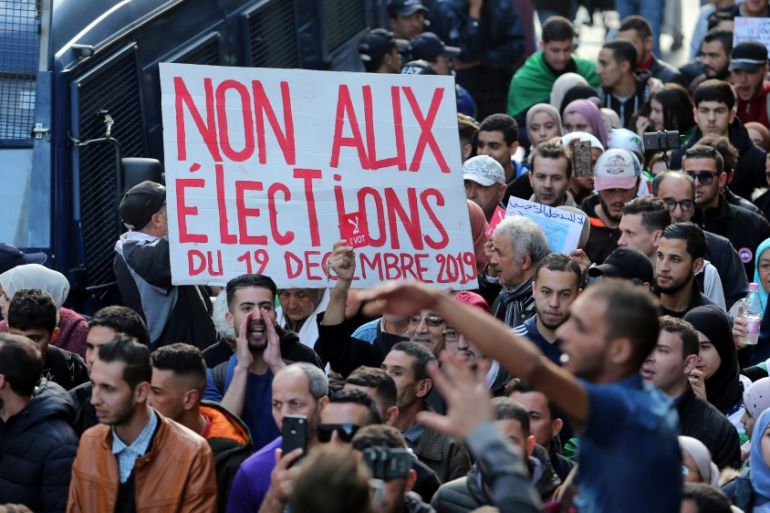 The protesters have rejected the vote, the first since former President Bouteflika was forced out by the military amid nationwide demonstrations in April, citing fears that the election is a mechanism for the political elite to retain power.