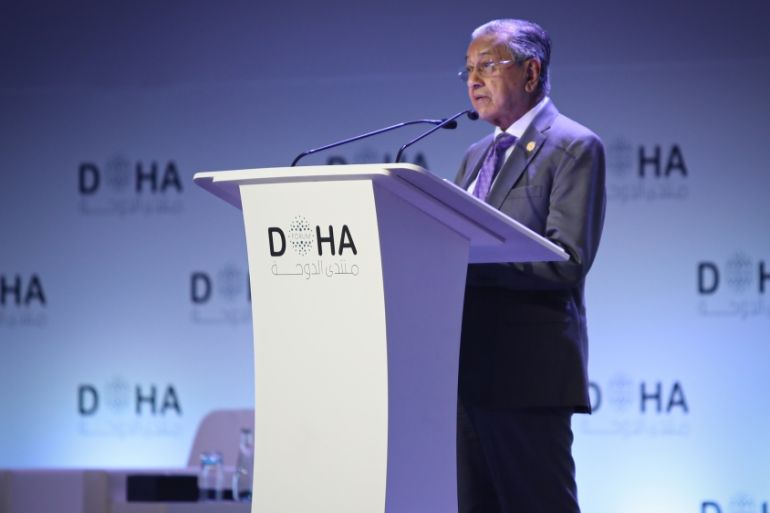Speaking at Doha Forum 2019, Mahathir Mohamad says sanctions can only be applied on countries by United Nations.