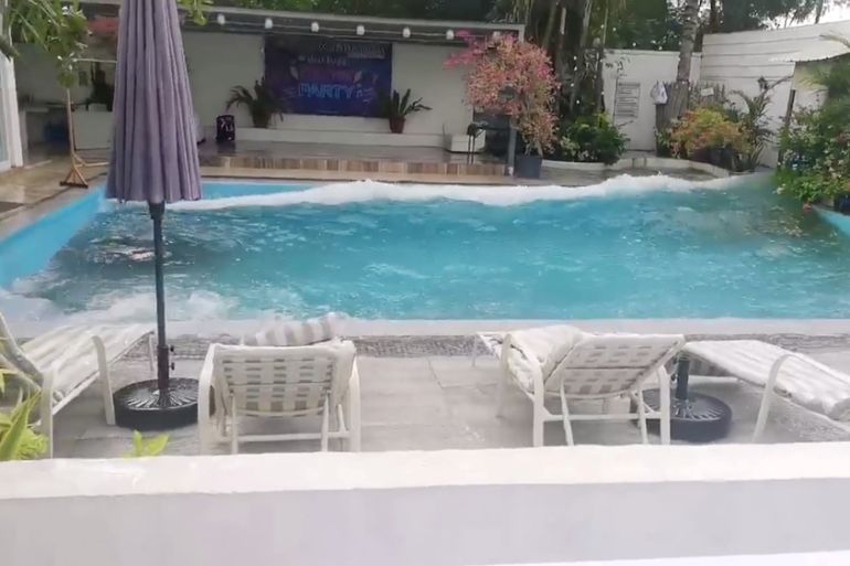 Video footage of the earthquake posted by users on Twitter showed electrical wires swaying and erupting in a shower of sparks. Another video showed water sloshing out of a hotel swimming pool.