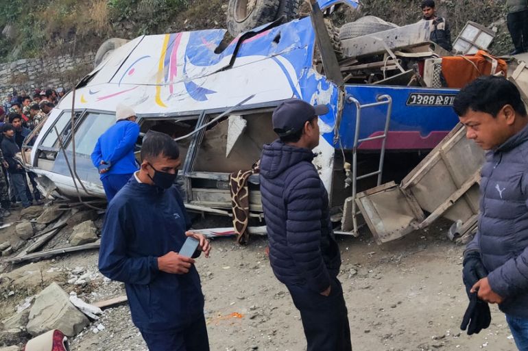 The bus carrying 32 passengers plunged 70 metres (230 feet) onto a lower stretch of the winding road in Sindhupalchowk district on Sunday, about 80 kilometres (50 miles) northeast of the capital Kathmandu.