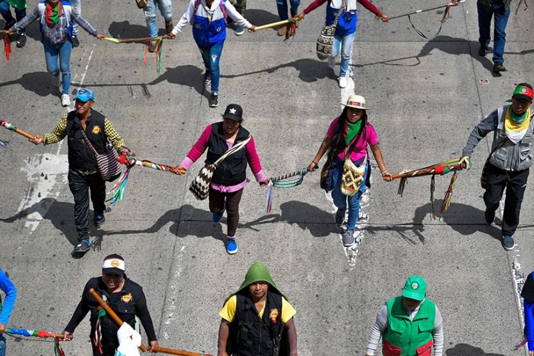 “They’re killing indigenous leaders – we want peace,” said 43-year-old Jose Asemeo Capiz, part of the Indigenous Guard, carrying the traditional baston.