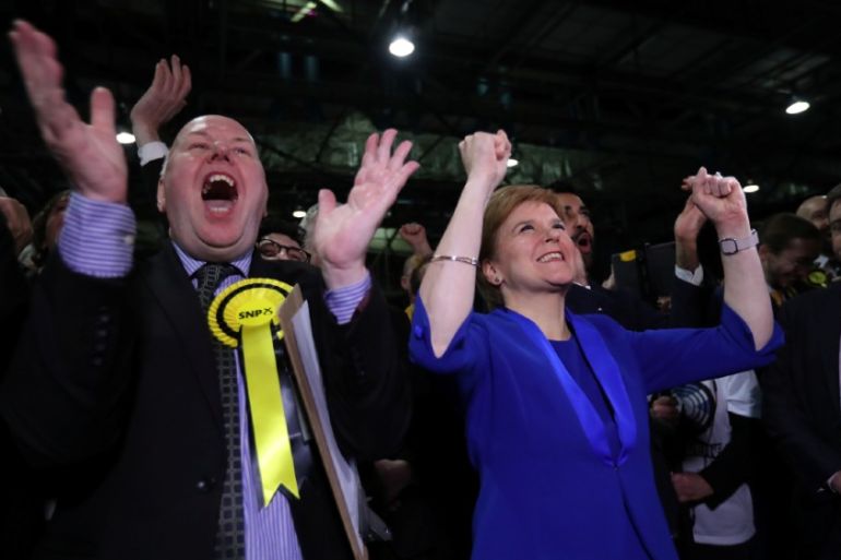 Sturgeon’s party gained 13 seats from the 2017 UK general election but was eight seats shy of the 56 it took in 2015. She said the result represented a “renewed, refreshed and strengthened” mandate for a second vote on Scottish statehood.
