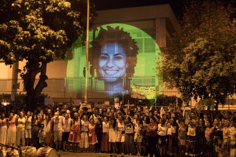 ![People gather in Lapa neighbourhood, Rio de Janeiro, Brazil during a demonstration calling for justice over the murder of Marielle Franco [File: Carl de Souza/AFP]](https://www.aljazeera.com/wp-content/uploads/2018/04/1e35dfdf8e2240b389cc387cd47d09d4_18.jpeg?quality=80)