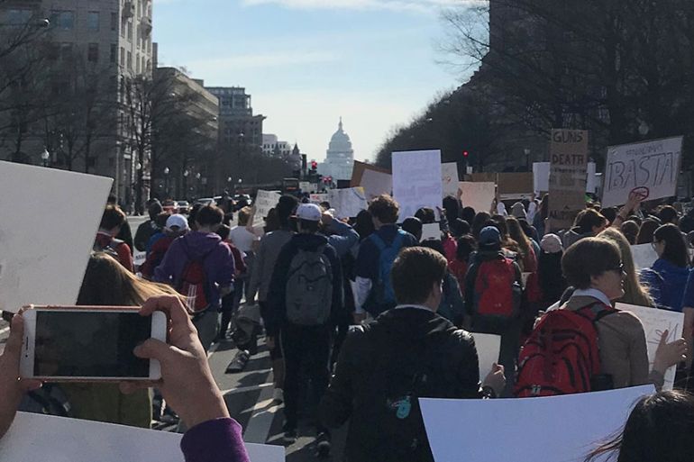 ![Students observe 17 minutes of silence outside the White House in honour of the 17 lives lost in the Parkland shooting last year [Ola Salem/Global News Insight]](https://www.aljazeera.com/wp-content/uploads/2019/03/7c7ada956e24484a94e134b902ee6221_18.jpeg?quality=80)