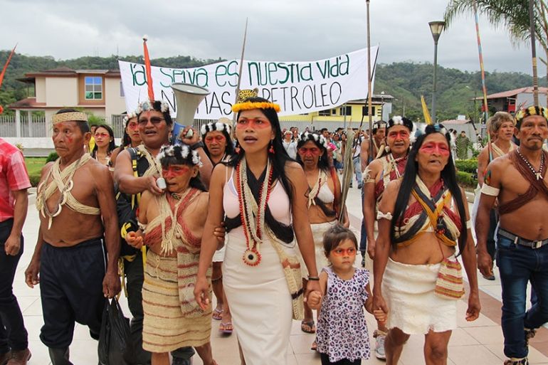 ![A Waorani man sings as hundreds of community members and supporters march to thejudicial office in Puyo Thursday [Kimberley Brown/Global News Insight]](https://www.aljazeera.com/wp-content/uploads/2019/04/bcf5e730406b4c3fa5514d06cef9018e_18.jpeg?quality=80)