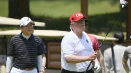 Trump tweeted that he was “Going to play golf right now with @AbeShinzo. Japan loves the game.” Abe also posted a selfie photo on Twitter of him and Trump, smiling widely on the greens.
