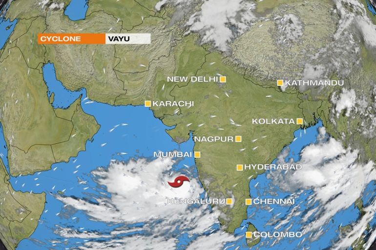 The India Meteorological Department said on Wednesday that Cyclone Vayu was due to hit the Gujarat coast early on Thursday with winds gusting up to 170km an hour.