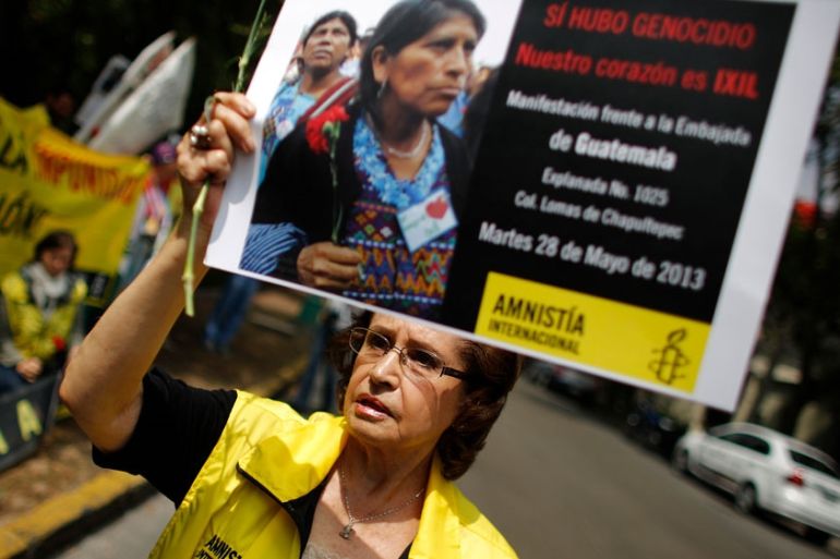 Mendoza evaded arrest in 2011, but former dictator Efrain Rios Montt and his chief of military intelligence Jose Mauricio Rodriguez Sanchez were arrested and stood trial for genocide and crimes against humanity.