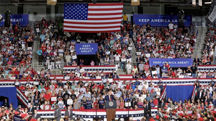 The crowds, decked out in the colours of the US flag and “Make America Great Again” caps, responded with the chant – “Send her back! Send her back!”