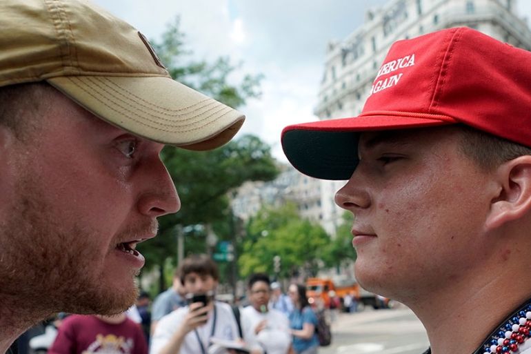 Organised by All Out DC, an activist collective, the counterprotest response to the far-right rally across the street highlighted the struggles of people with marginalised identities including immigrants, Native Americans and trans women of colour with speeches, chants and performances by local artists.