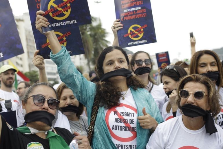 The protesters also urged President Jair Bolsonaro to reject recently passed legislation that would impose prison time for officials who obtain evidence by unlawful means.