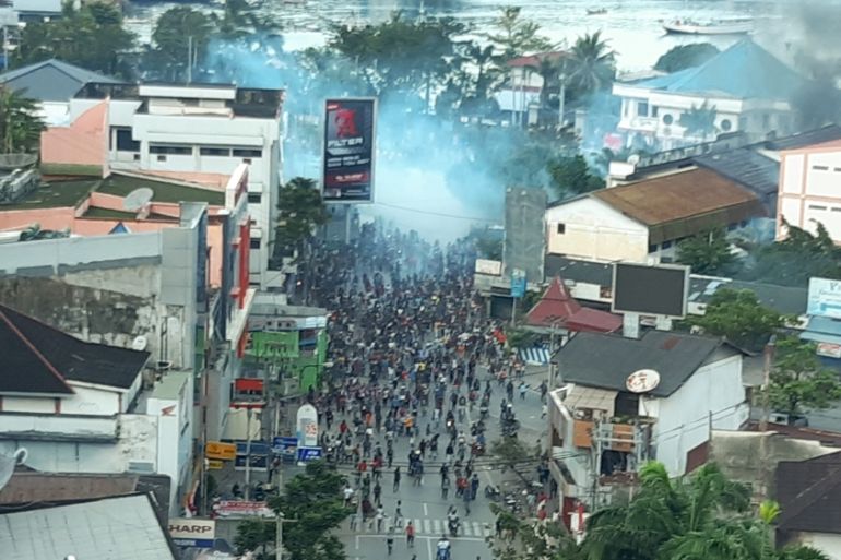 A general view of clashes during a protest in Jayapura, Papua
