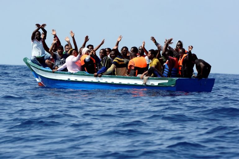 Their boat started taking in water after a Libyan patrol vessel fired shots at them, hitting the hull.