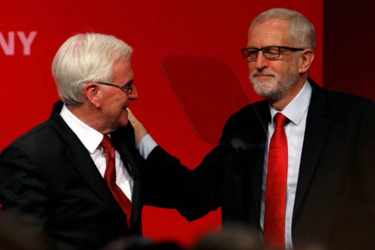 “I implore you, please give Jeremy the support he needs later so that prime minister Corbyn can lead us to a bright new dawn,” he told the conference.