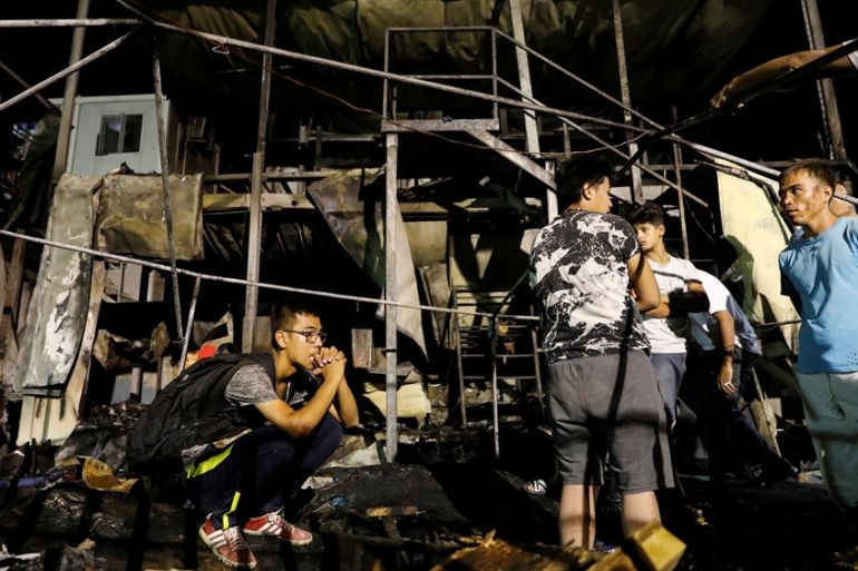 Rights groups have blamed the blaze, which killed at least one woman, on the dire overcrowding at the camp, which currently houses about 13,000 people, despite having a capacity of just 3,000.