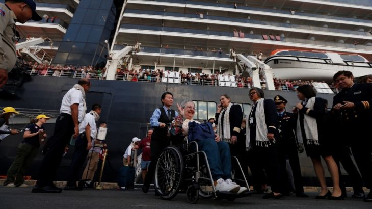 After that, the Dutch-flagged luxury liner was barred from docking in Manila in the Philippines, Kaohsiung in Taiwan, and, despite a request by the US State Department, the American territory of Guam. Malaysia and Thailand also turned it away.