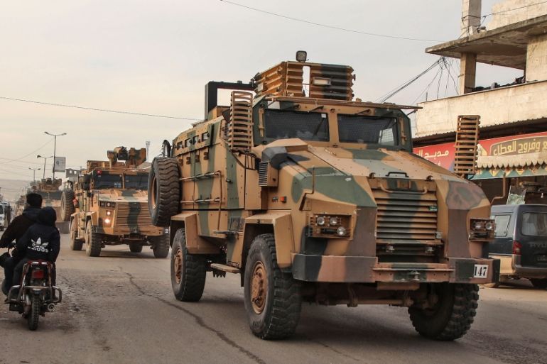 The Turkish military convoy consisted of dozens of armoured vehicles, fuel tanker trucks and flatbed trucks carrying tanks and armoured personnel carriers.