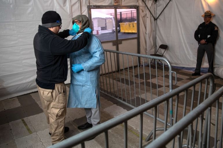 “We are scared,” Dr Arabia Mollette of Brookdale University Hospital and Medical Center in Brooklyn, New York, told Reuters news agency. “We’re trying to fight for everyone else’s life, but we also fight for our lives as well, because we’re also at the highest risk of exposure.”