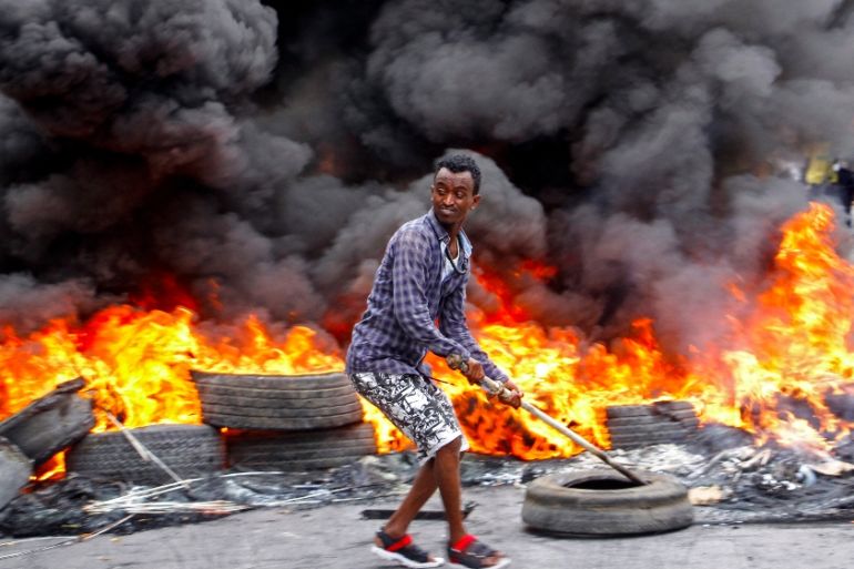 The shooting on Friday evening sparked protests in Mogadishu that continued on Saturday with crowds of young men burning tires and demanding justice.